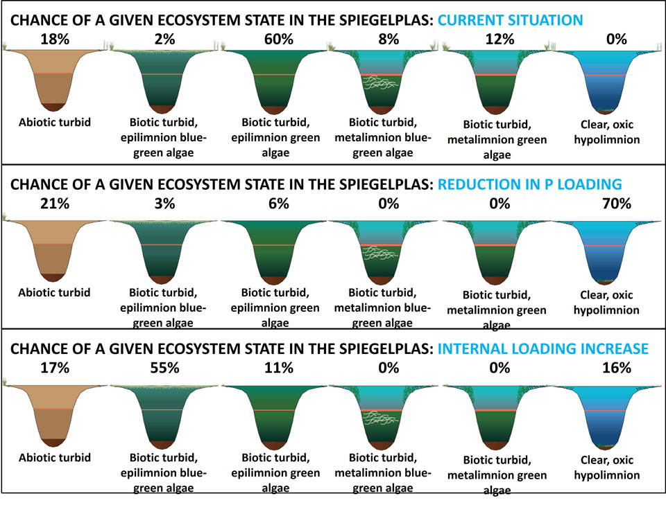In the Lage Vaart, mainly the difference in hydrology ensures a completely different dynamics in continuously measured P-total concentrations. The measurements were taken at the pumping station De Blocq van Kuffeler, where water is pumped from a mainly agricultural cachment into the Markermeer Lake. When the pumps are switched on, the P-total concentrations become approximately twice as high. The concentration peaks are far less high than in the Hupselse beek, but the summer concentrations in the Lage Vaart are much higher (0.6 mg/l vs. 0.05 mg/l). In polder systems with low flow rates, the phosphate-rich sediment does not reach the pumping station for a large part. The phosphate binds to iron or iron(hydr)oxides and is temporarily stored in the sediments. During dry and warm periods in summer with oxygen depletion in the sediments, this phosphorus is released to the water column again.