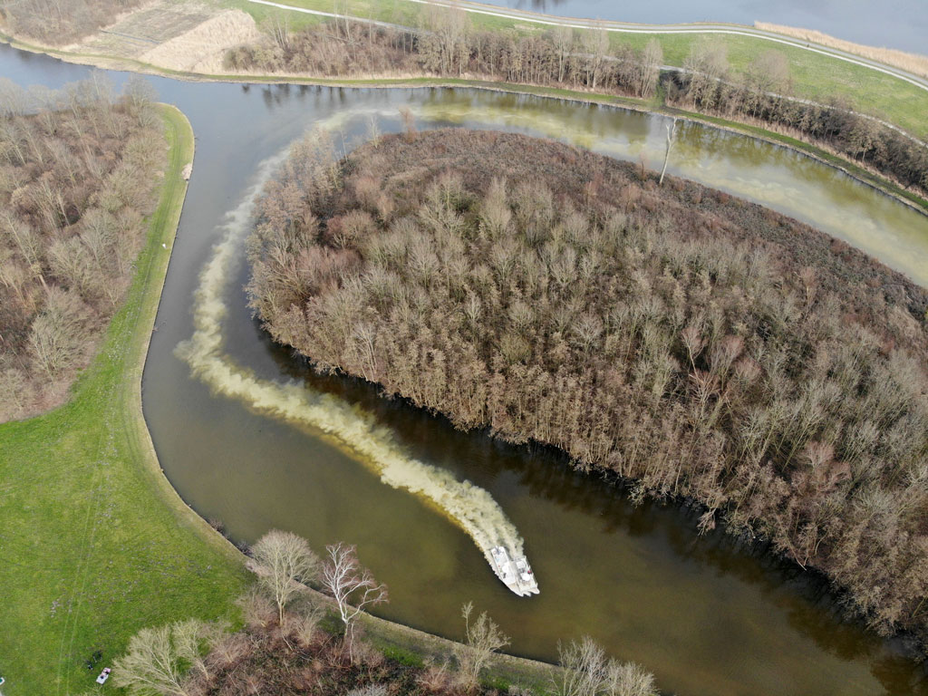 Sometimes, blue-green algae near the banks can cause additional nuisance by forming floating layers. The latter results from the movement of water and leads to extremely high concentrations. This phenomenon cannot be predicted by the Algae Radar, since water movement is not included in the model. However, it is possible to take measures, such as flushing or peroxide treatment, based on the Algae Radar forecast, even before the nuisance starts. The Algae Radar can also be used to test the effectiveness of measures.